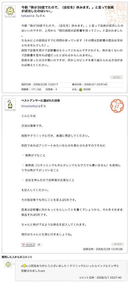 ヤフー知恵袋 これって On Twitter 今朝 熱が39度でたので 会社を 休みます と言って仮病 が成功したのはいいのですが 上司から 明日病院の診断書を持ってこい と言われました あなたは 常習犯なのでは Https T Co Qmgak2ewci