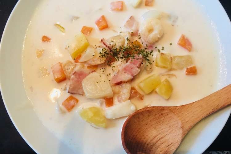 あさイチ放送 ごちそうおかゆクラムチャウダー風をさらにアレンジ シーフードミックスを利用してみる 今回はあさりの水煮の缶詰を使用していましたが シーフードミックスに代用しても簡単に作る事ができます 余ってしまったシーフードミックスを使ってみたり. シーフードミックスで作る簡単クラムチャウダー レシピ 須賀いづみさん 更新日 2020年02月14日 こんにちは 須賀いづみです 最近は朝食にお味噌汁かスープを作るのが定番になっています 具材もたくさん入れられるし 体も温まるし 朝のバタバタした時間にしっかり栄養補給できるのは. クラムチャウダーだと貝のうまみがあるので シーフードミックスではなくエビだけだったり 鮭でもおいしいですよ ご訪問ありがとうございます レシピブログに登録しています.